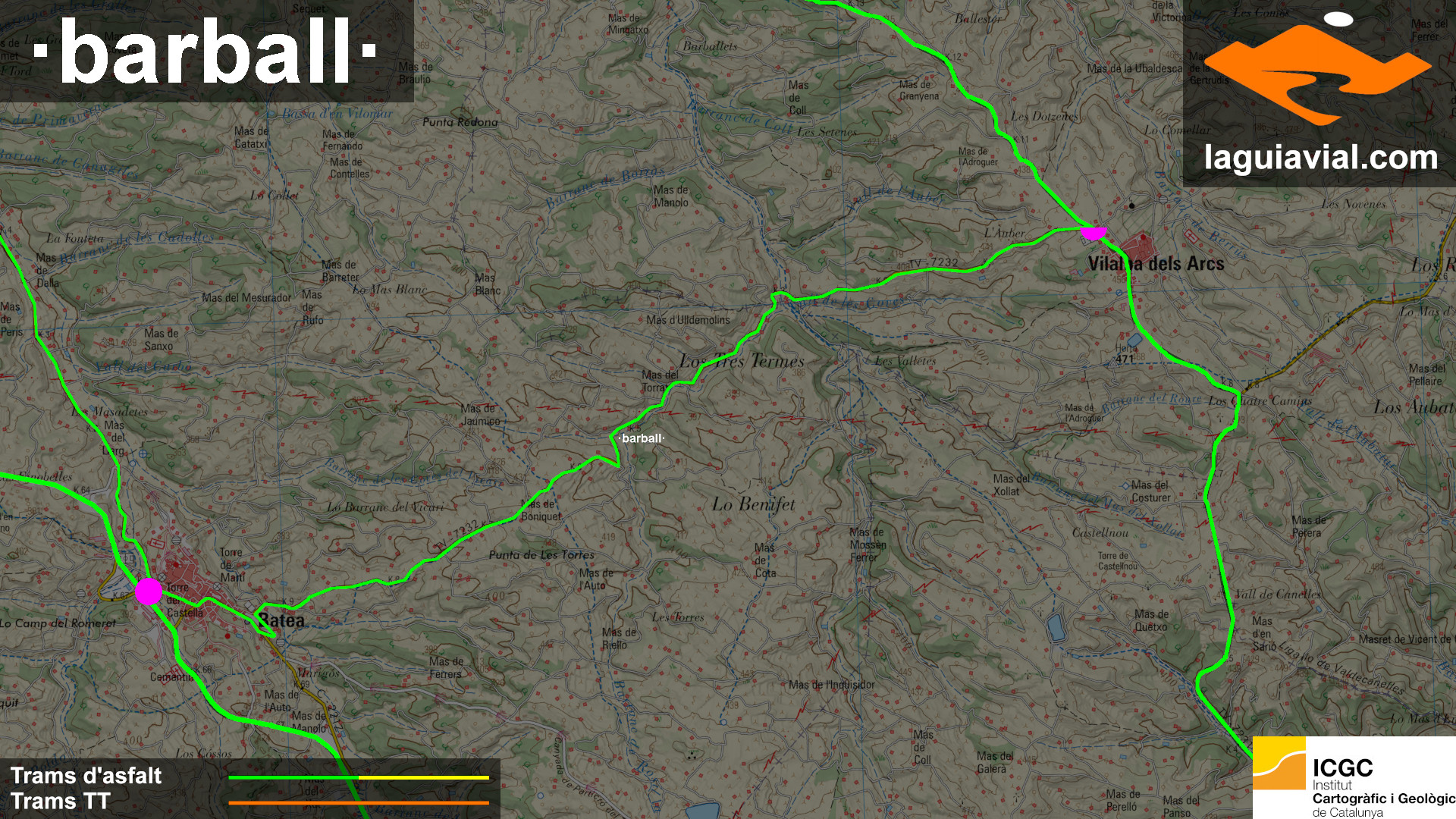 ·TV-7232· batea – villalba dels arcs ·11 km· ·1 quart· ·s alta·