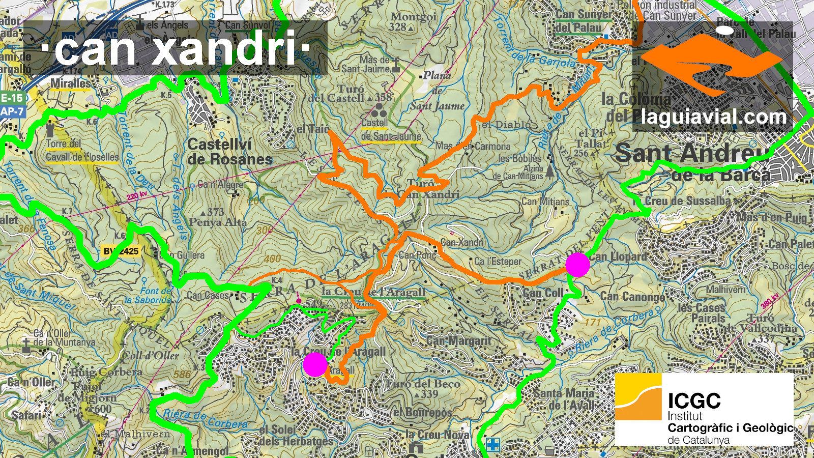 Can Coll – la Creu de l’Aragall ·3 km· ·1 quart· ·d baixa·