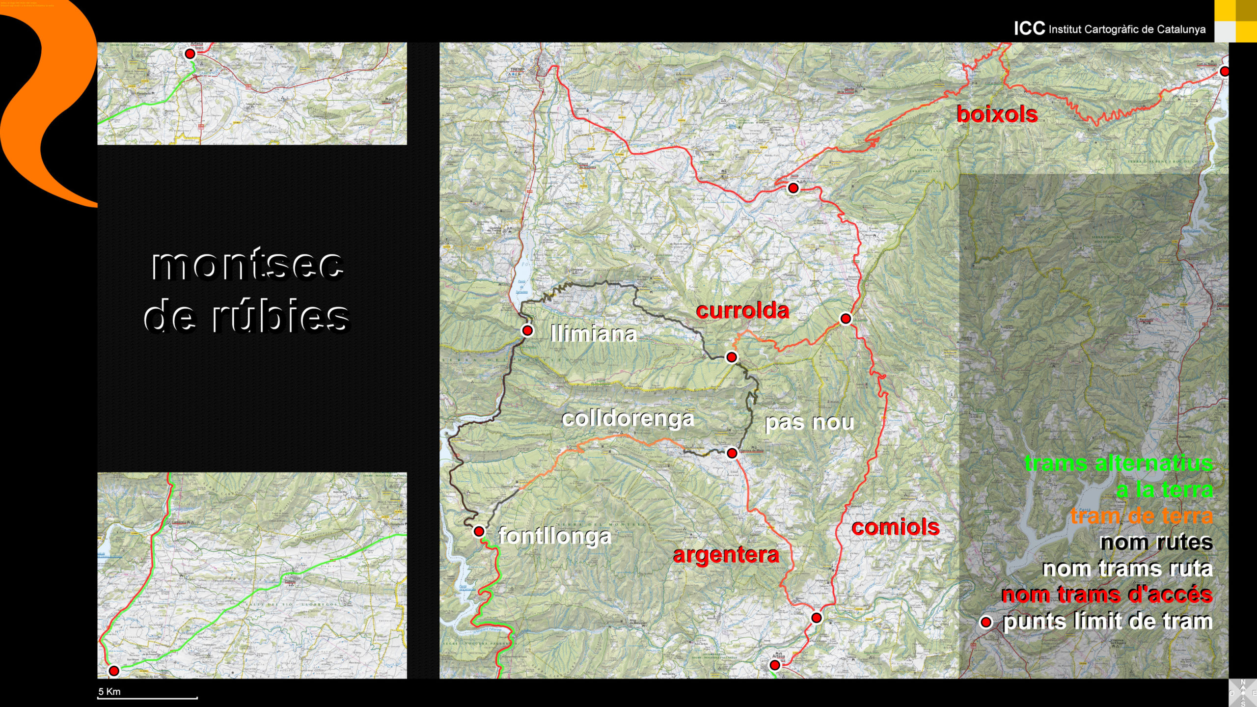 La ruta descriu una volta a l’entorn de la serra amb una petita desviació per visitar Llimiana.