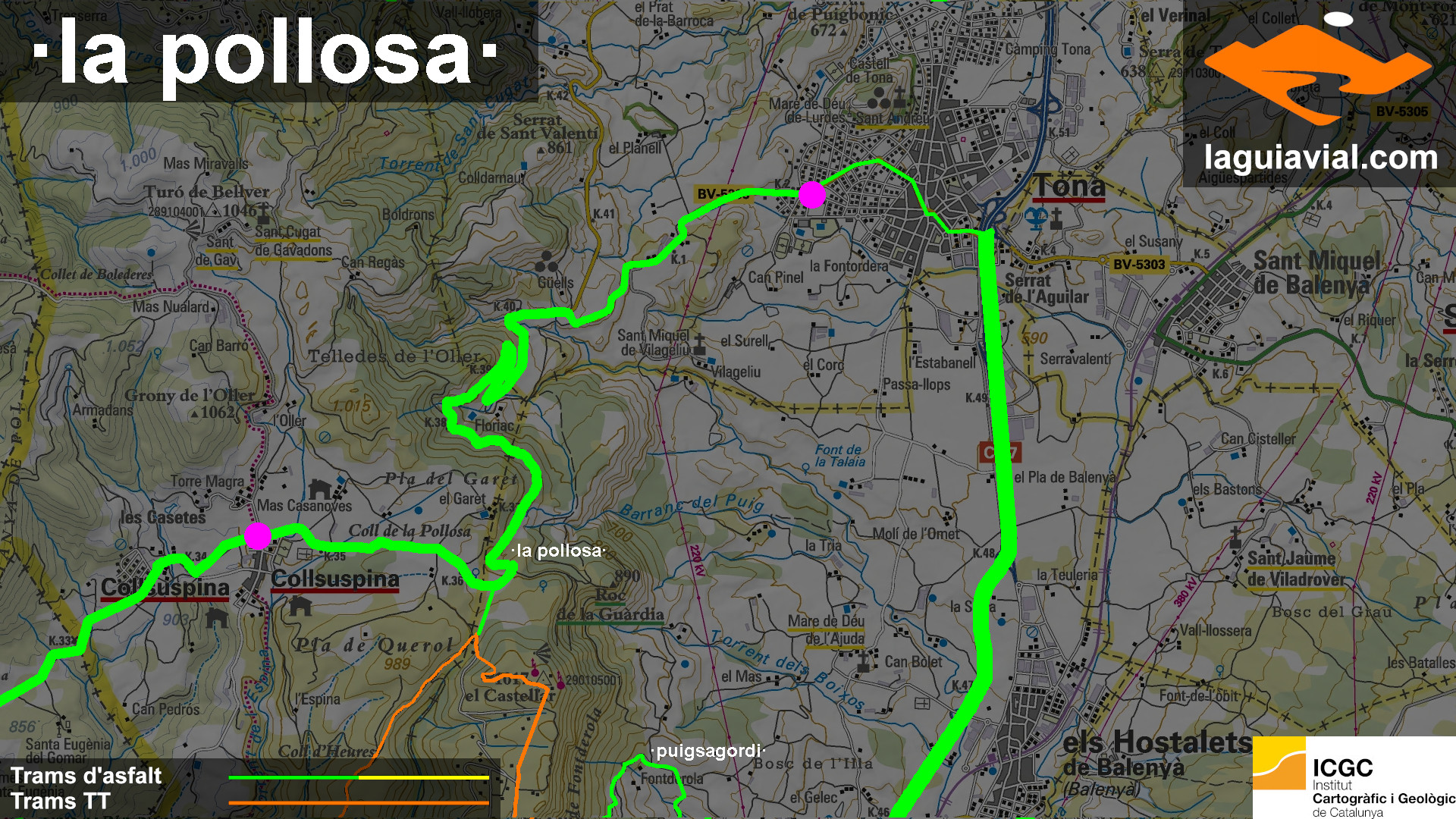 Coll de la Pollosa és el nom que rep el punt més alt del tram