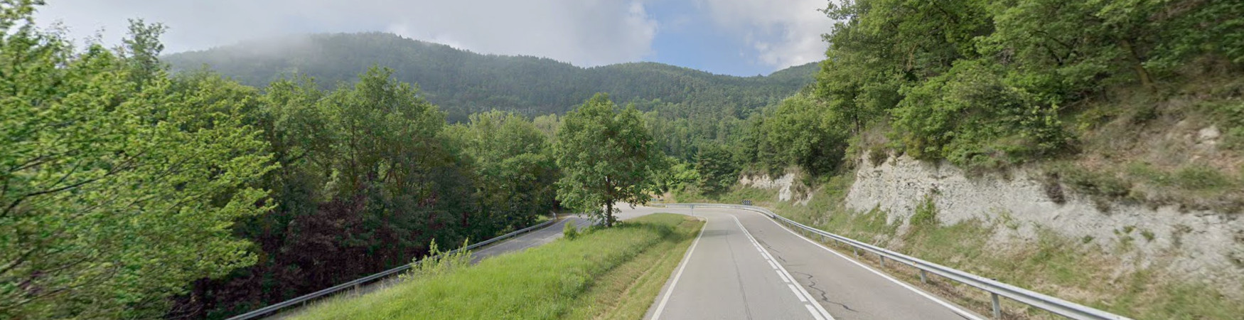 Entre Tona i Collsuspina cal cobrir el desnivell de la Plana de Vic a l’altiplà del Moianès, la carretera remunta decidida entre el rocallam del grau.