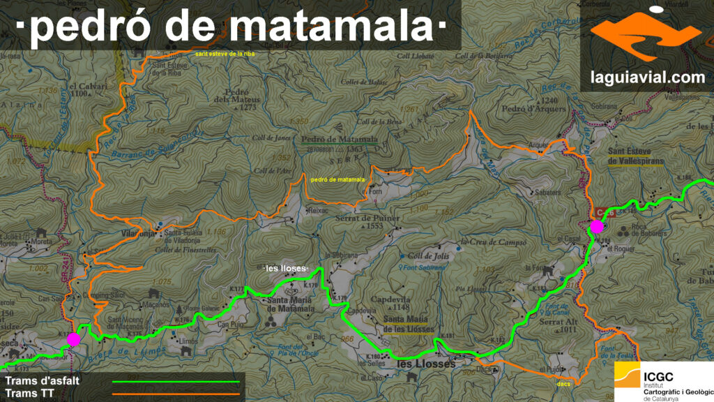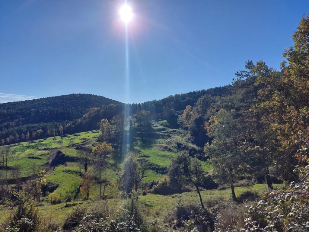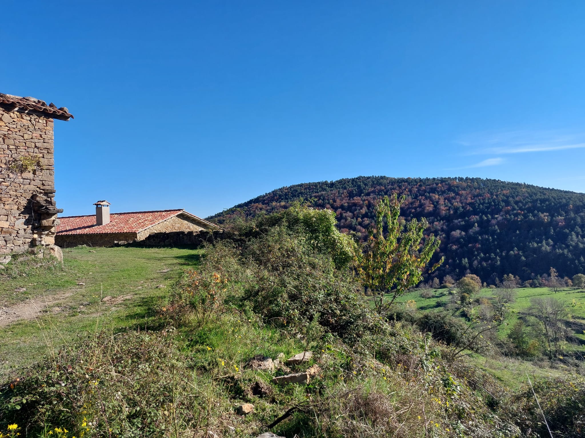 per el vessant sud del Pedró, uneix tot de masies, conreu, bosc i panorames, meravellós