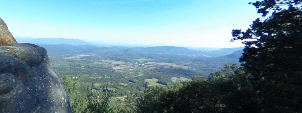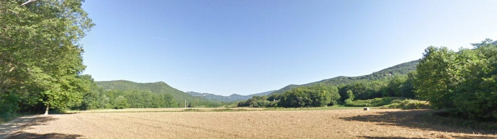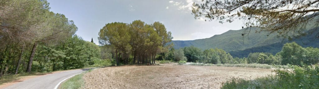 Amb muntanyes de suaus relleus i folrades d’espesa vegetació y bosc de caràcter mediterrani.