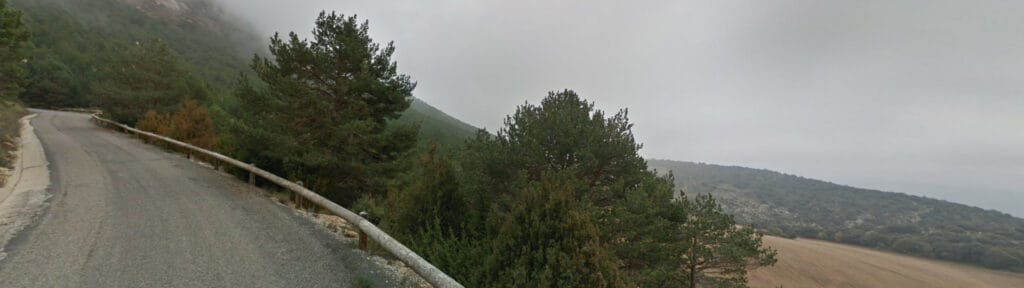 Carretera estreta sense línies, asfalt suficient i traçat natural.