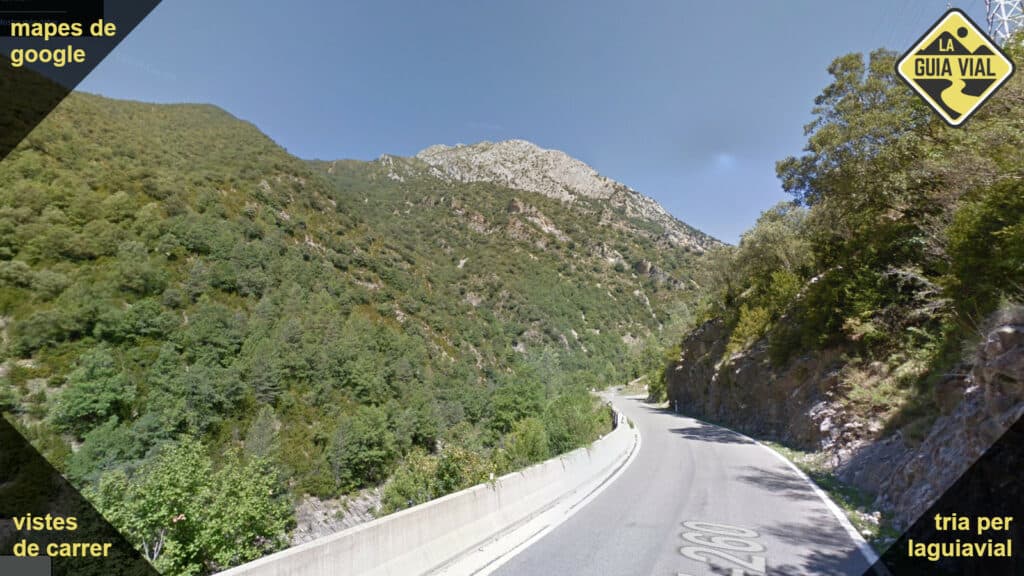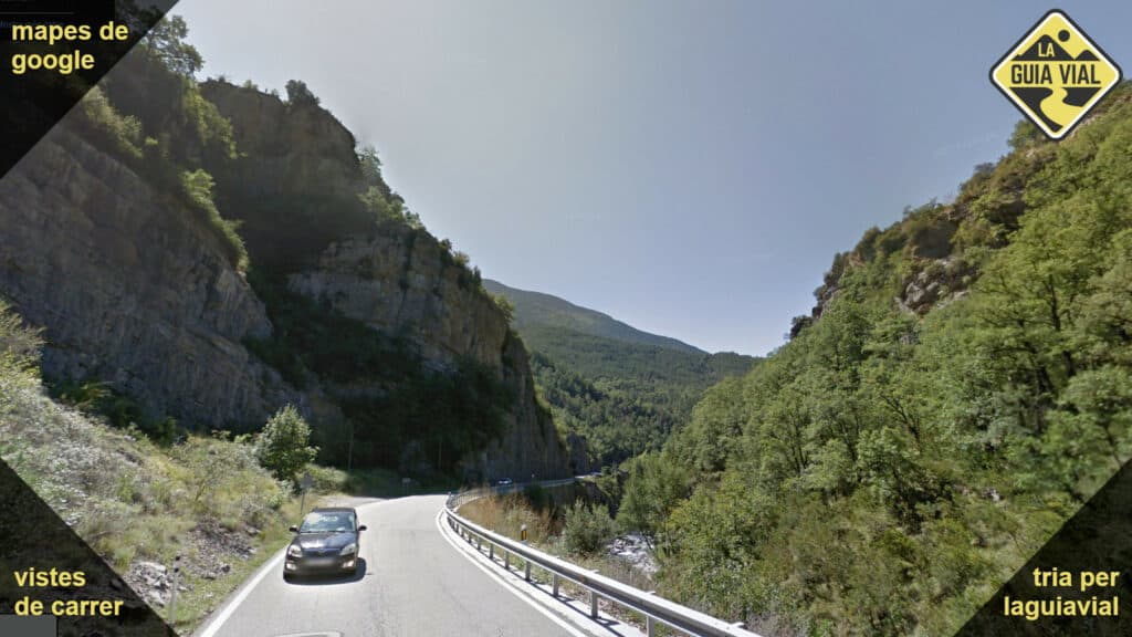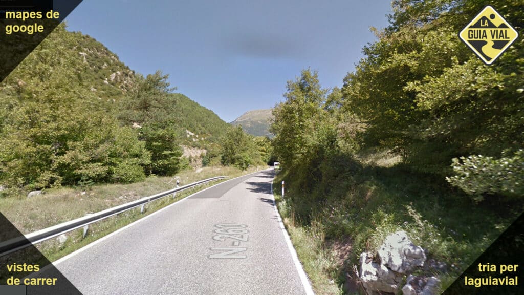 Carretera ample amb línies vorals i central, bon asfalt i traçat natural.